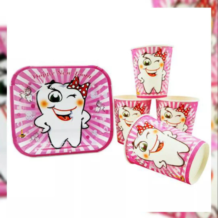 لیوان بشقاب کاغذی طرح دندان دختر شامل ۱۰عدد لیوان ۱۰عدد بشقاب مناسب برای میهمانی و تولد