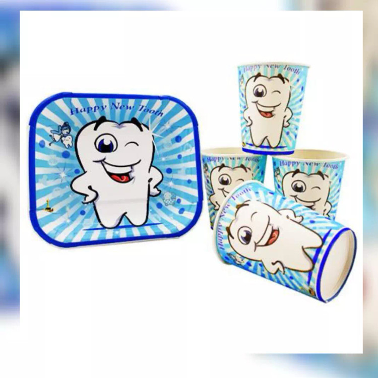 لیوان و بشقاب کاغذی طرح دندان پسر شامل ۱۰عدد لیوان کاغذی ۱۰عدد بشقاب کاغذی