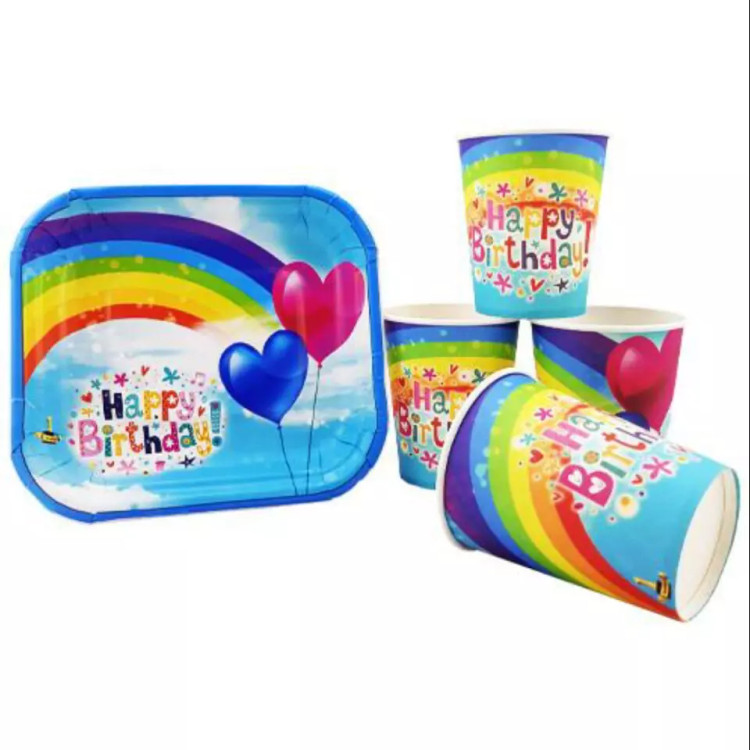 تم تولد لیوان و بشقاب تم رنگین کمان(پک10عددی )